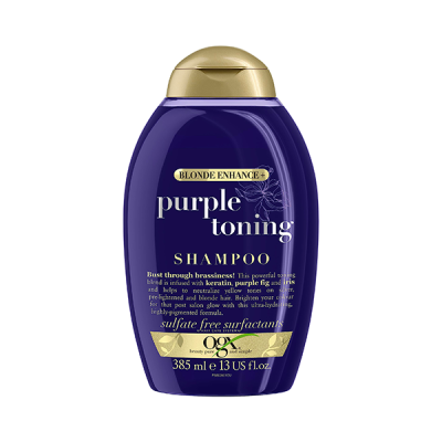 Idéal pour protéger la couleur, le shampooing OGX Blonde Enhance Purple Fig & Iris Toning Shampoo nettoie en douceur et tonifie tout en neutralisant les faux reflets jaunes et cuivrés des cheveux blancs argentés, pré-éclaircis ou blonds. Facile à utiliser et puissante, la formule rend les cheveux beaux des racines aux pointes.