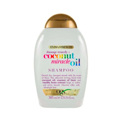 Le shampooing à l'huile de noix de coco OGX Miracle pour cheveux abîmés aide à transformer les cheveux épais et grossiers en cheveux soyeux et lisses.